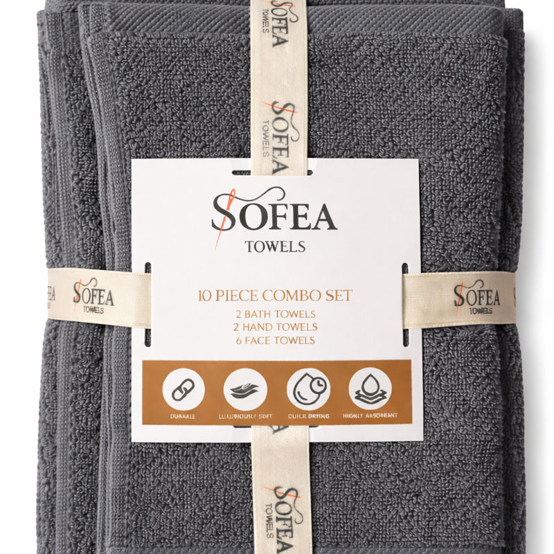 10 Piece Towel Set Dark Grey