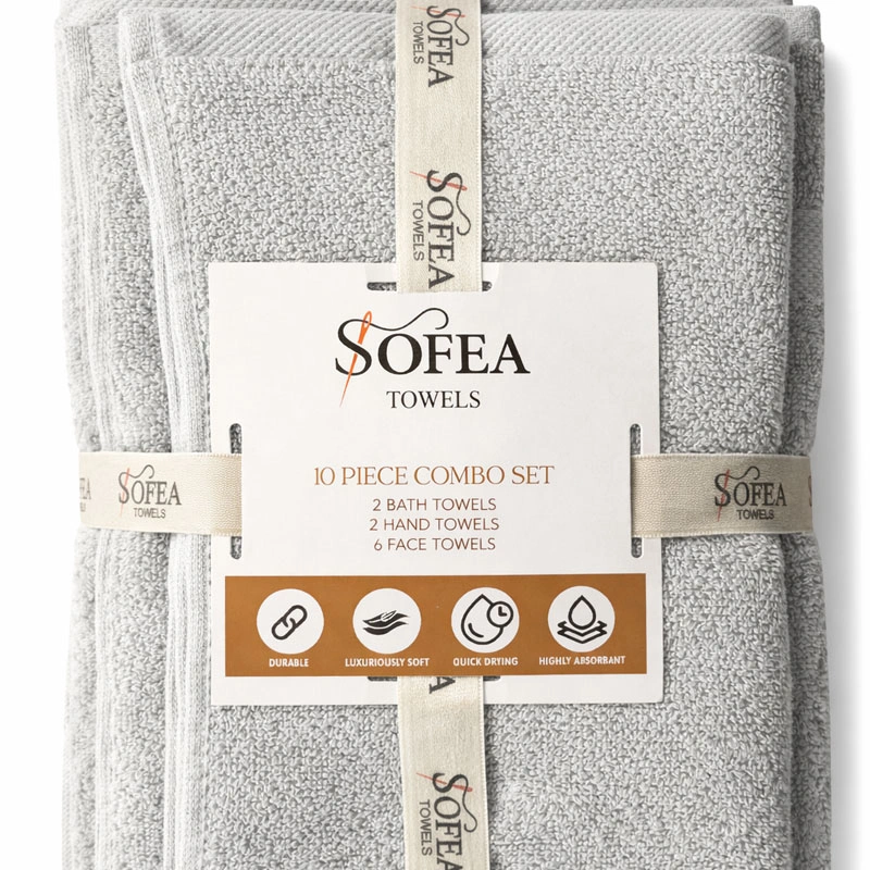 10 Piece Towel Set Light Grey